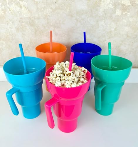 - Versatile Snacking: From savory snacks like popcorn and nachos to sweet treats like ice cream and desserts, our cup and bowl combo accommodates a wide range of snacks. The integrated straw holder means you can sip on your favorite beverage while enjoying your snack of choice.