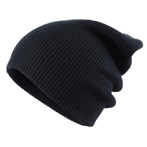 Home Prefer - Home Prefer Mens Winter Hats Thick Knit Cuff Beanie Cap Warm Stocking Beanie Hat French Navy