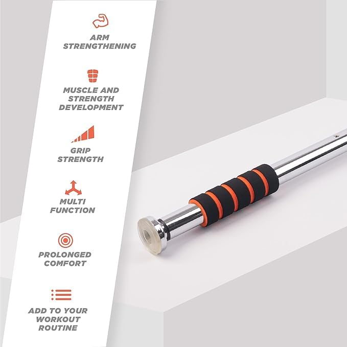 - قضيب تمارين قابل للتعديل: مصمم للتركيب في المنزل على إطارات الأبواب، يمكن تعديل الطول ليناسب مختلف العروض لممارسة تمارين العقلة والشد