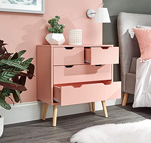 Home Source - Home Source 2+2 Bedroom Chest of Drawers Clothes Storage, Pink, Solid Wood
