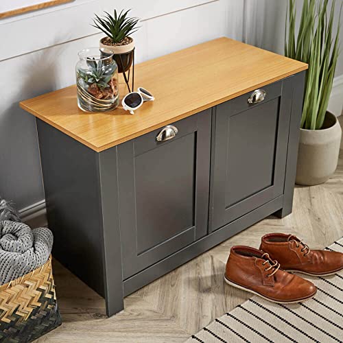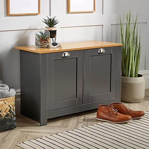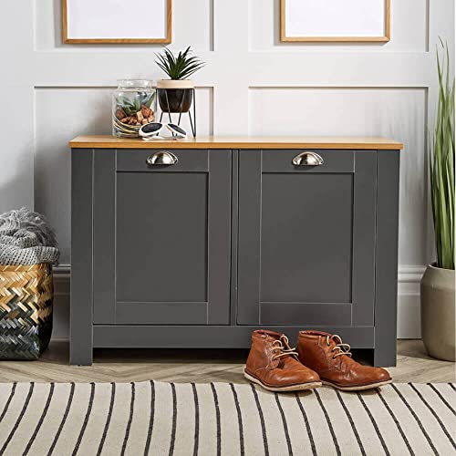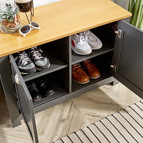 Home Source - جزامة خشبية ببابين ومقابض اكواب معدنية من هوم سورس للتخزين في الردهة، جرافيت، بلوط