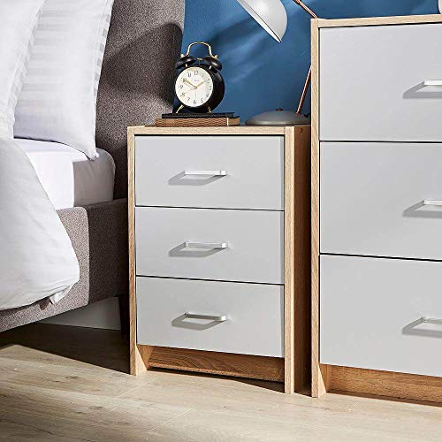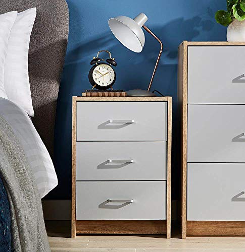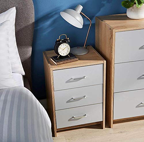 Home Source - Home Source Bedside Cabinet Side Table Night Stand Metal Runners Stratford, Grey and Oak, 3 Drawer
