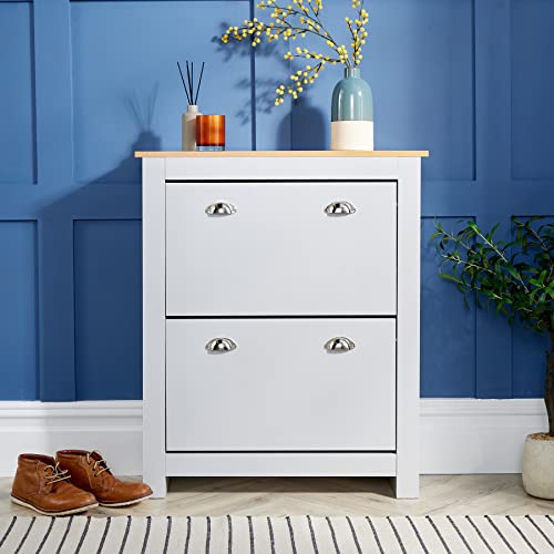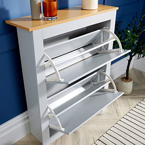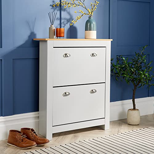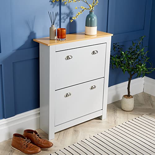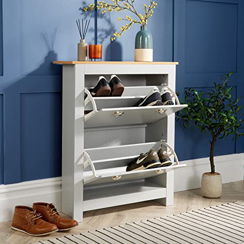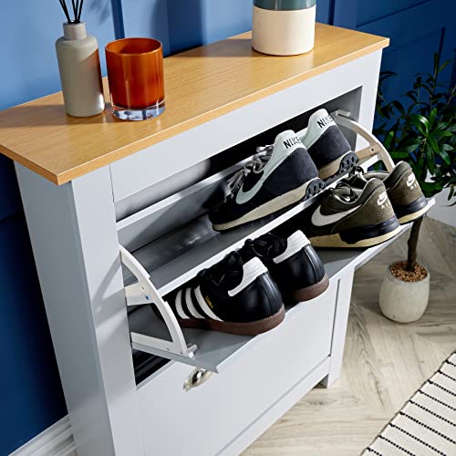 Home Source - Home Source Grey Oak 2 Door Shoe Cabinet Hallway Storage Cupboard Metal Handles, Medium