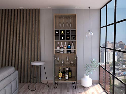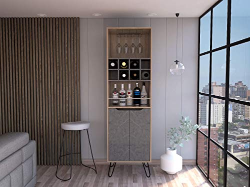 Home Source - دولاب جانبي بباب واحد لتخزين المشروبات من خشب مضغوط ام دي اف وطبقة خارجية من الصنوبر والحجر من هوم سورس