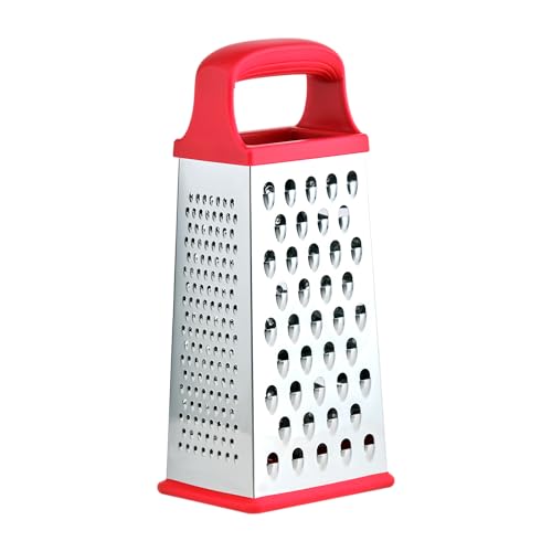 Home Store - Home Stainless Steel 4 Sided Grater with Red Rubber Handle, 18 cm Depth x 10 cm Width x 24 cm Height, Red