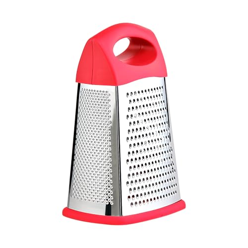 Home Store - Home Stainless Steel 4 Sided Grater with Red Rubber Handle, 20 cm Depth x 13 cm Width x 25 cm Height, Red