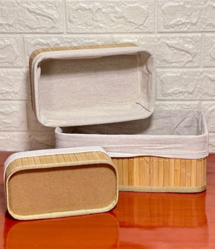 Generic - منظمات تخزين منزلية - طقم سلات خوص متعددة المقاسات مع بطانة داخلية من الكتان - مثالي للترتيب وتخزين الأغراض الصغيرة