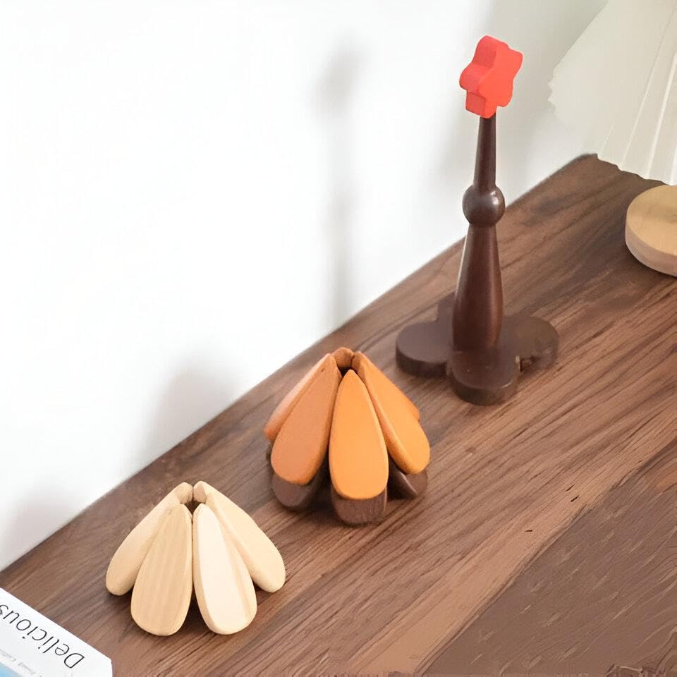 Generic - Home - Stylish 3-piece wooden thermal coaster set designed as delicate flowers, complete with matching wood stand, combining functional heat protection with modern aesthetics