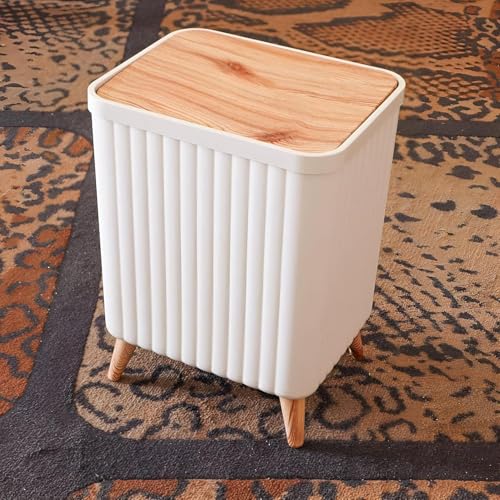 - Features sturdy legs and a movable lid with wooden-style accents that blend contemporary design with natural warmth.