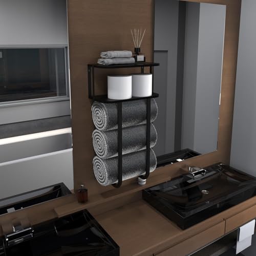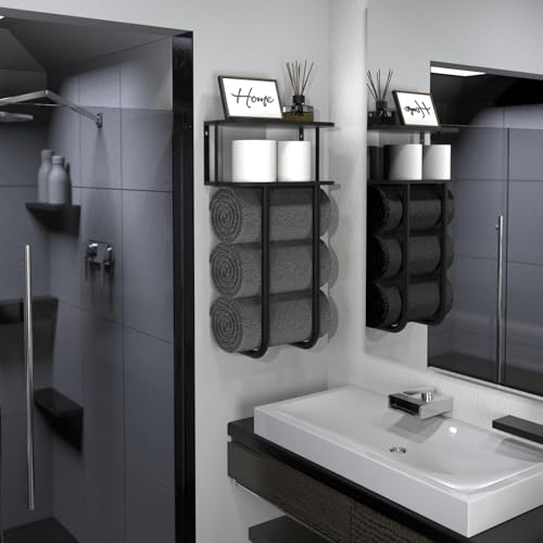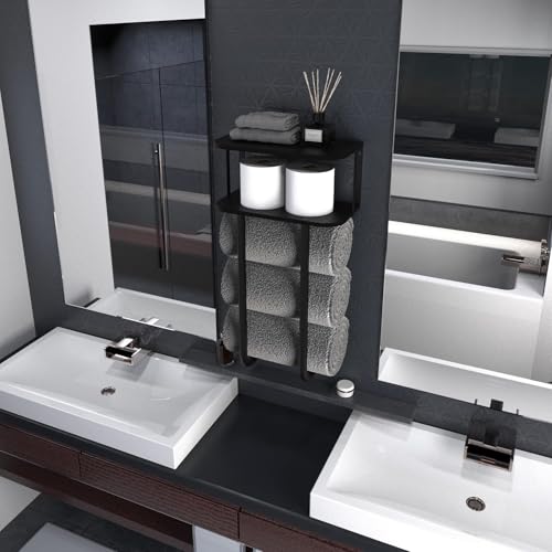 - Sturdy & Long-lasting: Made of high-quality metal, this towel holder for bathroom wall is sturdy and anti-rust. It could be installed next to the shower or above the toilet for easy access and storage. This bathroom shelf organizer is suitable for master bathroom, guest bathroom, RV, camper, hotel, spa, sauna and laundry room. The perfect housewarming gift for bathroom organization and remodel bathroom.