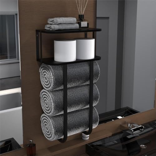 HomeDepal - HomeDepal Towel Racks for Bathroom with 2-Tier Wood Shelf, Bathroom Shelves Wall Mounted with Bath Towel Storage, Towel Holder for Bathroom Wall, Floating Shelves Over Toile (Black, 2-Tier Wood Shelf)