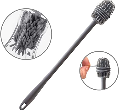 HomeGem - فرش زجاجة سيليكون من هوم جيم، فرشاة تنظيف زجاجات بيد طويلة، منظف زجاجات المياه بيد، فرشاة منظف لترمس حراري وأواني زجاج مثالية لفتحات الزجاجة بقطر صغير