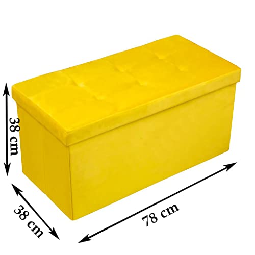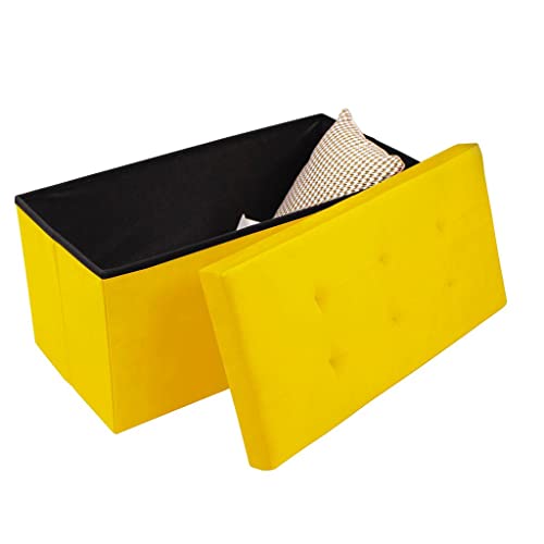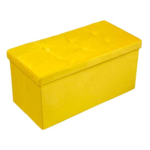 Home Harmony - HomeHarmony® Velvet Folding Storage Bench Ottoman Footrest Seat Toy Box Storage Chest (Ochre, Large)