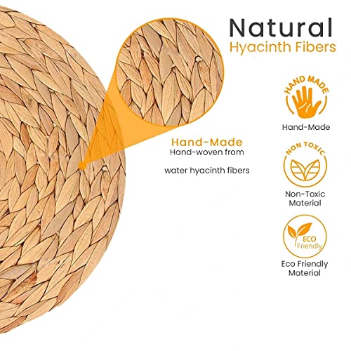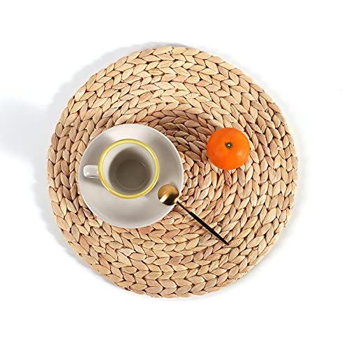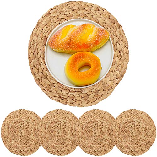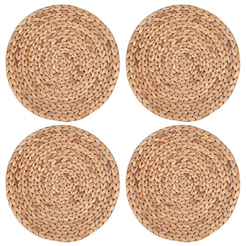 HOMEHOST - مجموعة مفارش مائدة منسوجة من الخوص الطبيعي المضفر، مفارش مائدة منسوجة من القش والراتان 35 سم، مقاومة للحرارة والانزلاق وعازلة للحرارة مصنوعة يدويًا لطاولة الطعام، 4 قطع