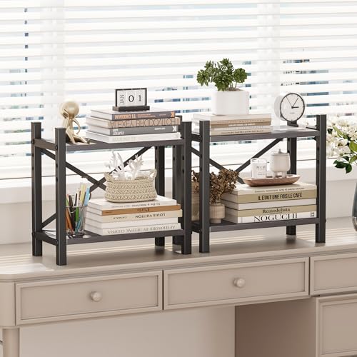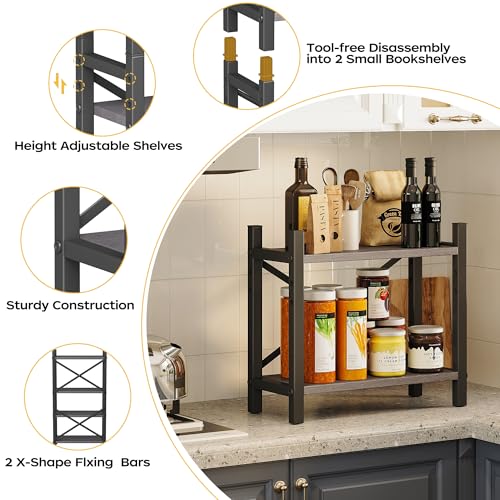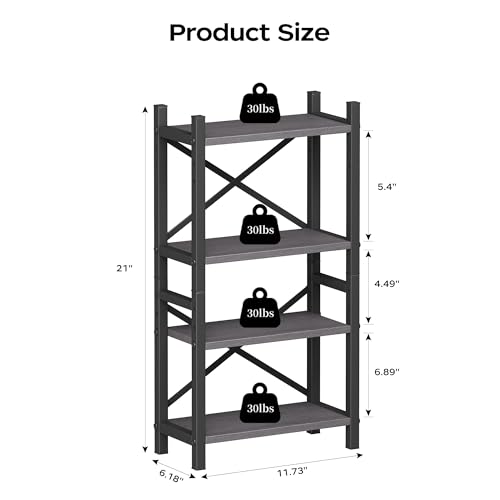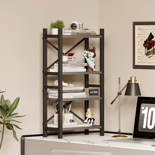 Homeiju - رف كتب مكتبي من هوميجو، خزانة كتب ضيقة قابلة للتكديس من 4 طبقات، رف عرض منظم مكتب صناعي قابل للتعديل، منظم كتب خشبي لسطح المكتب لغرفة المعيشة وغرفة النوم والمكتب المنزلي (رمادي)