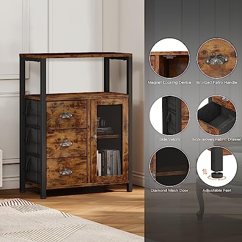 Homeiju - منظم تخزين للحمام مع 3 أدراج قابلة للإزالة وباب واحد، خزانة تخزين أرضية صناعية للمطبخ وغرفة المعيشة والحمام والمكتب المنزلي من هوميجو