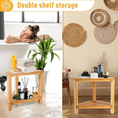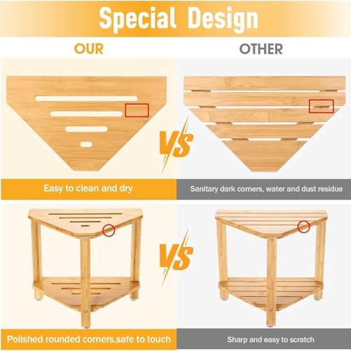 Homeily - Bamboo Corner Shelves, 2 Tier Bathroom Corner Shelf, Standing, Space Saving Corner Shelf, Small Shower Shelf, Standing for Skin Care, Cosmetics, Perfume, Shampoo, Shower Gel, 23 x 37 x 33 cm
