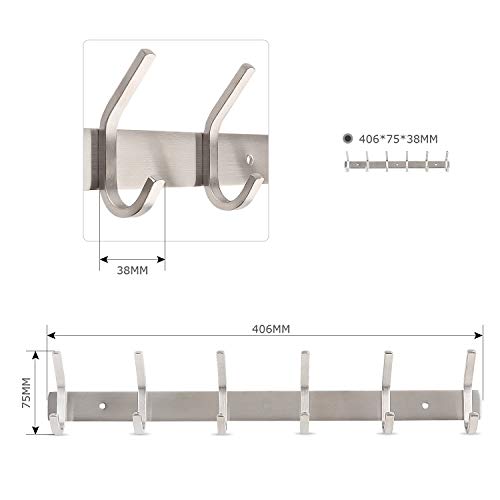 HomeMall - هوم مول خطاف لتعليق الملابس من الستانلس ستيل لتعليق المعاطف والمناشف والمعاطف على الحائط مع 6 رفوف معاطف للجاكيتات والملابس مناسبة لغرفة النوم والحمام والمطبخ
