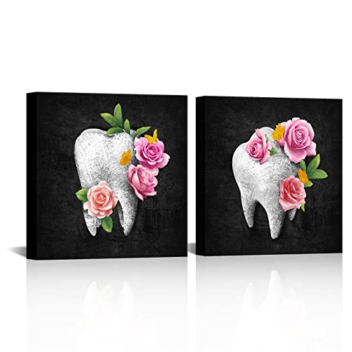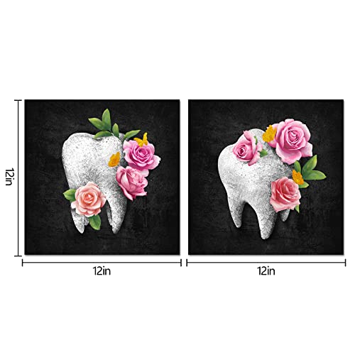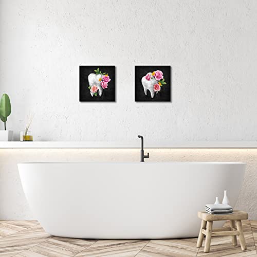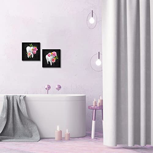 HOMEOART - HOMEOART Dental Office Decor Black and Pink Bathroom Decor Painting Dentist Office Decor Kids Bathroom Decoration Framed Artwork, Ready to Hang 12"x12"x2 Panels