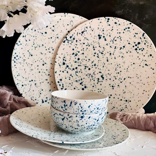 - The Porcelain Teal Dots Set is a charming addition to any kitchen with its playful teal dots.