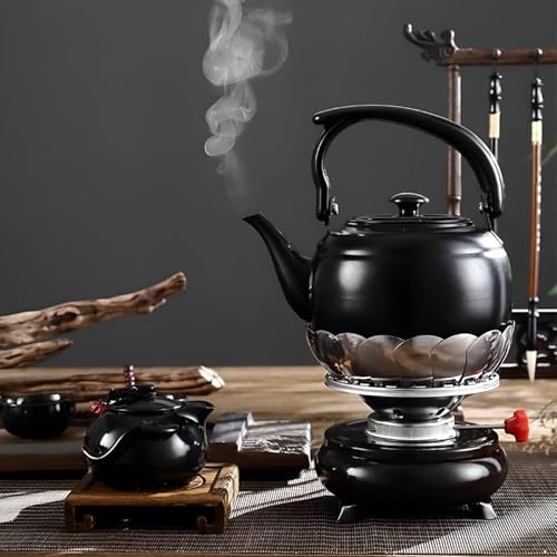 HOMERA - Black Steel Tea Pot with Infuser 1.2L 1.5L Rust Resistant Fast Heat Kitchen Kettle for Herbal and Regular Tea Best for Home Use or on the Go