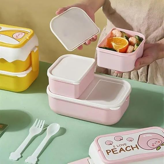 HOMERA - Two Tier Lunch Box with Three Separate Food Compartments Fork and Knife Included Healthy Safe Materials Portable Food Storage for Work School or Picnic