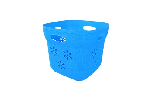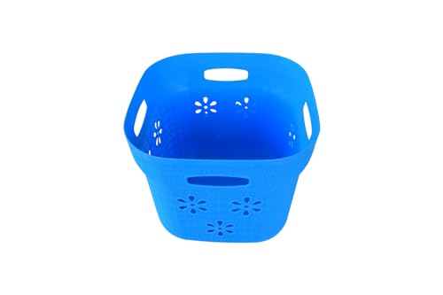 HOMESTA - Decorative Floral Pattern Laundry Basket with Handles, Multi Purpose Storage Container, Premium Quality for Home Organization (Blue)