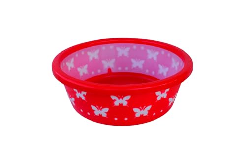 HOMESTA - Heavy-Duty Household Basin with Decorative Butterfly Pattern – Ideal for Laundry, Washing & Storage (Red, 52 * 21 CM)
