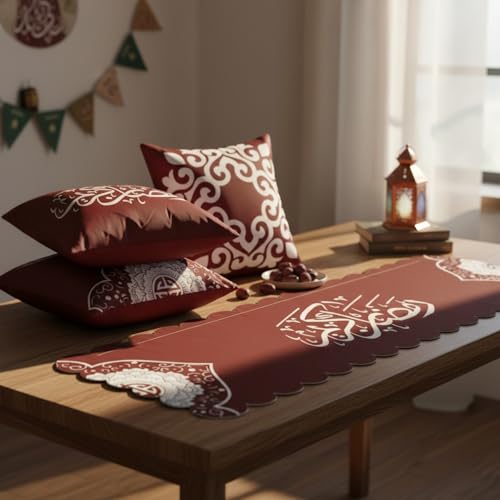 Homiesta - طقم مفرش طاولة ووسادة من 4 قطع من هومستا HM-RK-014، طول 145 سم × عرض 45 سم