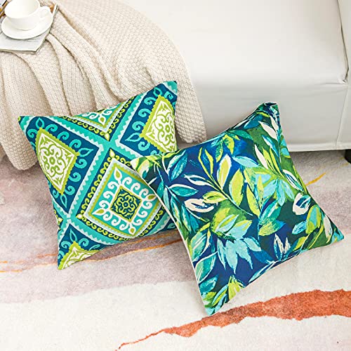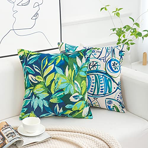 - Tropical Style: Tropical style cushion cover pattern is designed exclusively by our professional designers, printed various tropical style patterns with tropical leaves, flowers, fish and boho geometric elements. Bright green colors and vivid patterns on the pillowcase will refresh your room and exterior decor. It is the perfect outdoor decoration for patio furniture.
