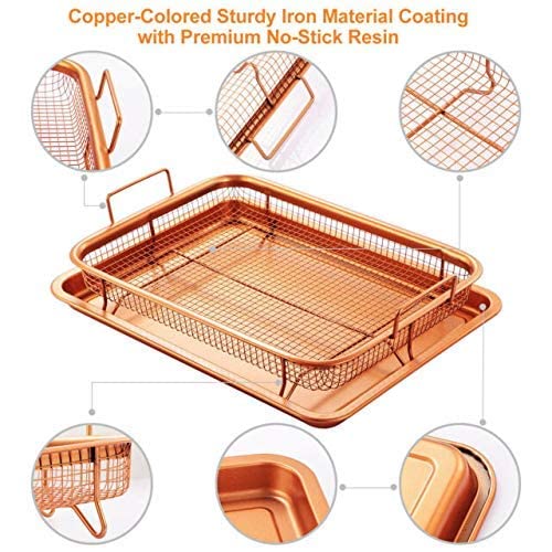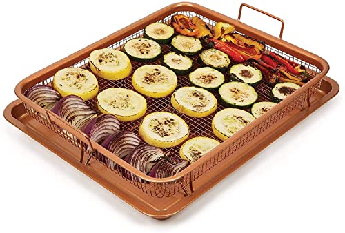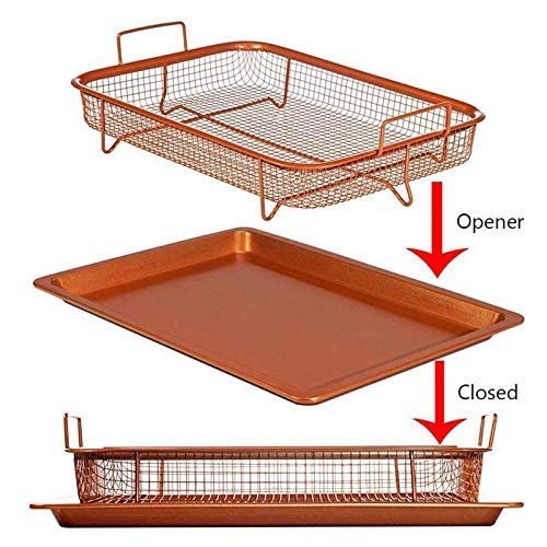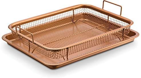 HOMETIC - صينية فرن لصنع الطعام المقرمش من هوميتيك، صينية نحاسية غير لاصقة، سلة للقلي بالهواء في الفرن رائعة للخبز وصنع الأطعمة المقرمشة، وتعد آمنة للاستخدام في غسالة الصحون