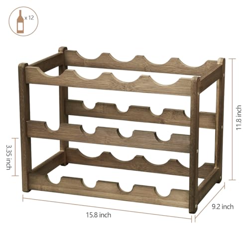 Homevany - هوم فاني رف مشروبات من الخيزران، رف خزانة تخزين قوي ومتين، رفوف النبيذ لسطح الطاولة للمخزن - 3 طبقات و12 زجاجة نبيذ، موكا