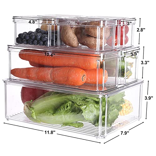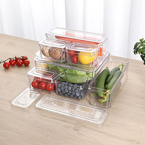 Homics - مجموعة صناديق تخزين وتنظيم قابلة للتكديس للثلاجة والفريزر لتخزين الفاكهة والخضروات والمؤن حافظات شفافة مع أغطية خالية من مادة بيسفينول أ 7 قطع هومكس