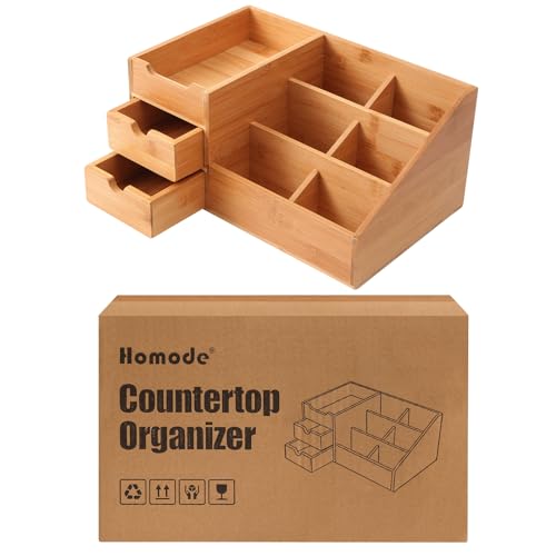 Homode - منظم مكياج من هومود حامل فرش خشب لمستحضرات التجميل مع أدراج منظمات لدولاب الحمام البامبو للتخزين على الأسطح والتسريحة أو أسطح الرفوف