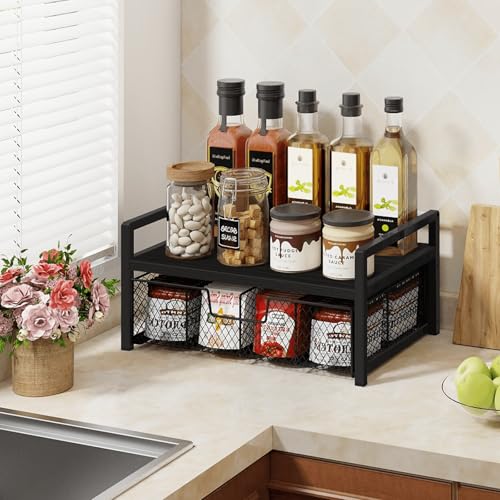 - Multi-Functional & Durable: This versatile storage rack is made from high-quality particleboard and a reinforced, widened metal frame, built to last, mildly waterproof, and easy to clean. It is not just for tea bags but can also be used to store coffee capsules, k cups in a coffee bar, or organize spices in the kitchen