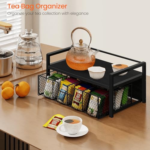 Homode - Homode Wood Tea Bag Organizer, Teabag Holder with Drawer, Tea Organizers and Storage Box, 8 Compartments Tea Caddy Station Chests Display Container for Counter Kitchen, Black