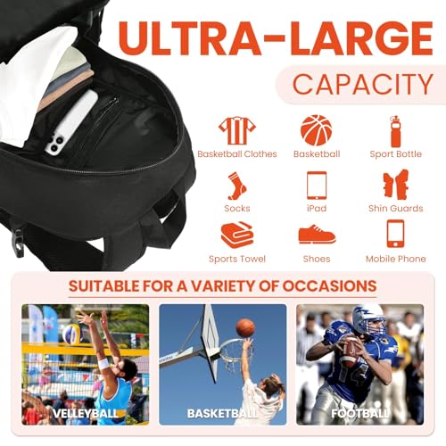 Homodoskey - Basketball Shoulder Large Sport Bag, Basketball Backpack with Ball and Shoes Compartment Fit Volleyball,Soccer,Travel,and School,Large Capacity Sports Training Equipment Bags