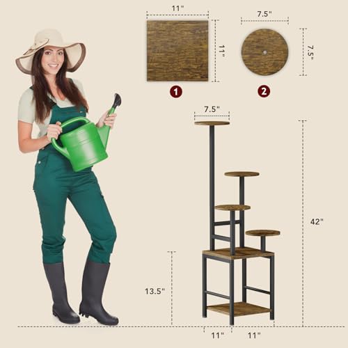- [Heavy-Duty Design] With heavy-duty iron pipes and waterproof walnut boards, this tiered indoor plant stand is constructed to withstand the elements and provide lasting support to your favorite plants. The thickened boards are covered with a waterproof layer to prevent deformation, curvature or water damage, making it suitable for both indoor and outdoor use.