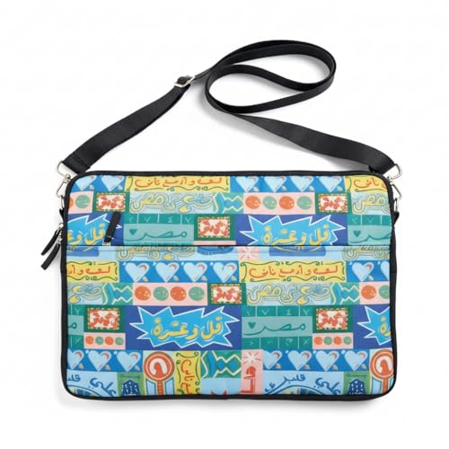 YAWZA - HONA EL QAHERA Laptop Bag 15.6 Inch. Blue Printed Polyester Laptop Sleeve with Adjustable Shoulder Strap, Soft Padded Waterproof Lining, Egyptian Design Laptop Case for Work, Travel & Daily Use