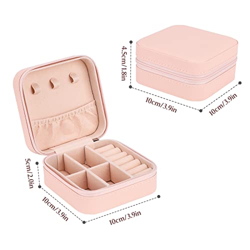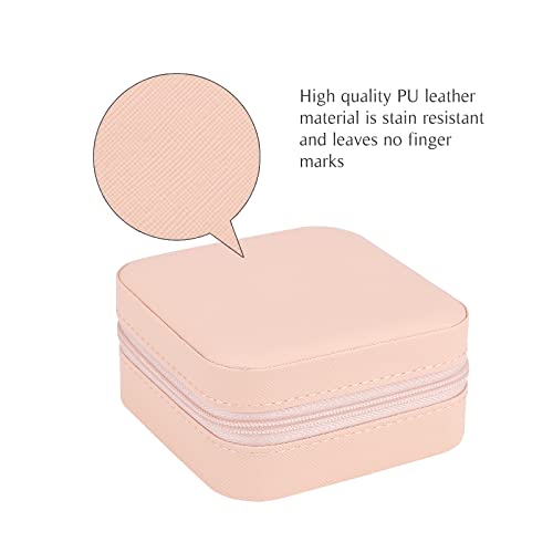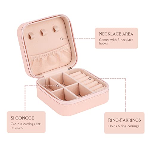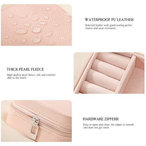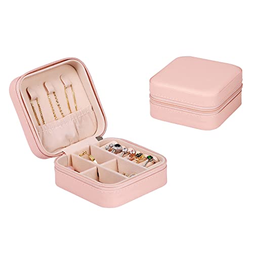 Honeueuen - صندوق صغير محمول من الجلد الصناعي لحفظ المجوهرات اساور وسلاسل وخواتم وحلق هونوين لون بينك جلد صناعي زهري