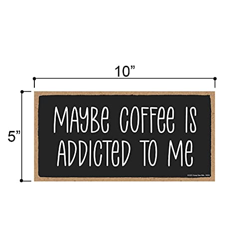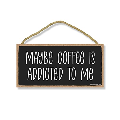 Honey Dew Gifts - لوحة فنية للتعليق على الحائط بتصميم عبارة «Maybe Coffee is Addicted to Me» مقاس 25.4×12.7 سم، لافتة خشبية مزخرفة لديكور المنزل والمتجر، لافتات قهوة ومقهى من هوني ديو غيفتس