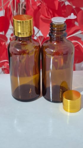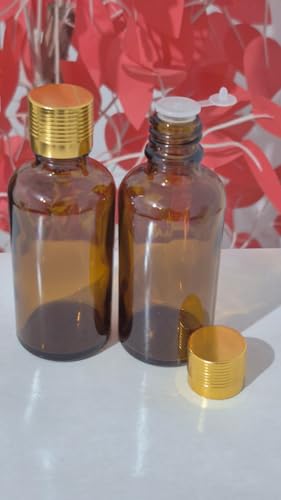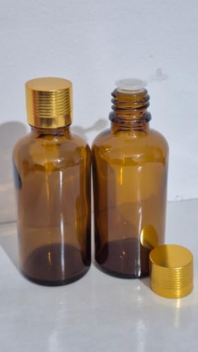Generic - Honey Glass Essential Oil Bottles, 50ml, Gold Cap and Seal Cap Set of 2