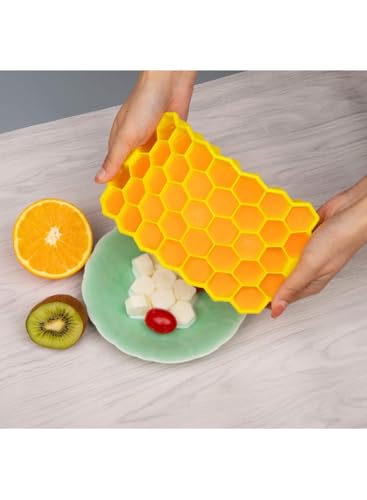 generic - Honeycomb Silicone Flexible Ice Cube Tray with Lid, 37 Holes, Flexible and Soft Suitable for Beverage Fridge Freezer for Making Small Ice Cubes - yellow