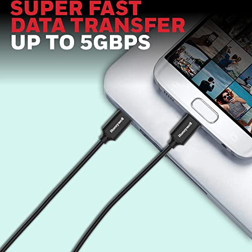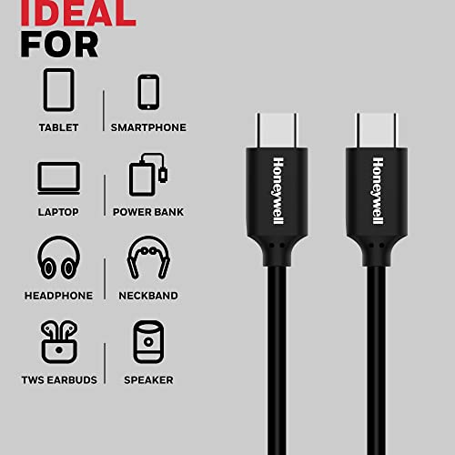 Honeywell - Honeywell USB C To Type C USB 3.1 Cable, PD 100W with Max Output 3A, QC 3.0, Ultra-Fast Charge & Sync Cable, 5GB transfer speed, 1.8Meters, Black