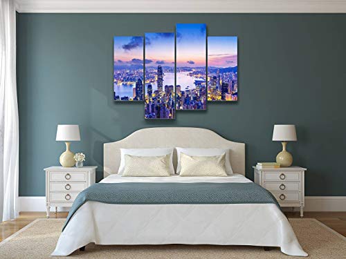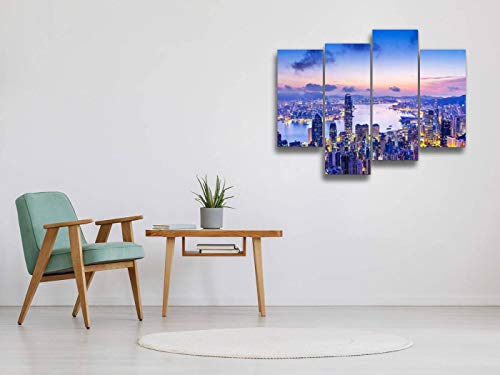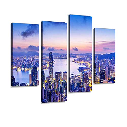 Weone Artwork - مجموعة لوحات فنية جدارية معلقة على قماش بتصميم أفق هونج كونج عند غروب الشمس، أعمال فنية حديثة، مطبوعات صور تجريدية، ديكور منزلي، هدية بتصميم فريد مؤطر مكون من 4 لوحات