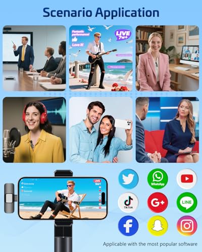 - Universal Wireless Mic for All Devices Works seamlessly with iPhone (Lightning or Type-C), Android (Type-C). This tiny wireless microphone comes with all necessary adapters - Just plug and record instantly.