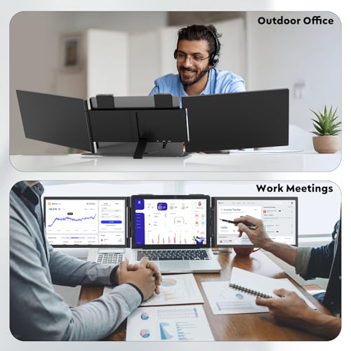 - 【triple laptop monitors】This screen extender portable laptop allows you to have three screens for office work in one second, enhance your productivity by up to 300%, allowing you to efficiently multitask with multiple windows. Say goodbye to the inconvenience of constantly switching between applications on a single laptop. Ideal for individuals who are always on the go, remote workers, IT professionals, movie enthusiasts, programmers, and more!