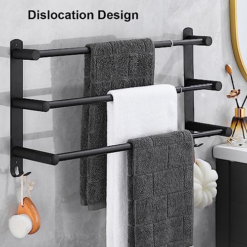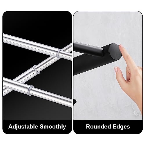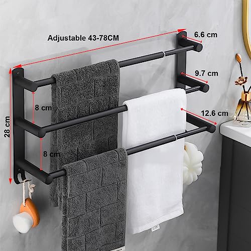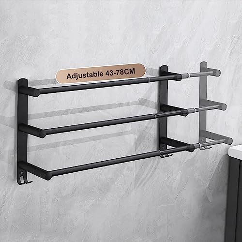 HONPHIER - Adjustable Towel Rails 43-78CM Bath Towel Racks Stainless Steel Towel Shelves with Hooks Wall Mounted Towel Holders Towel Bar for Kitchen Bathroom (Black 3-Tier)