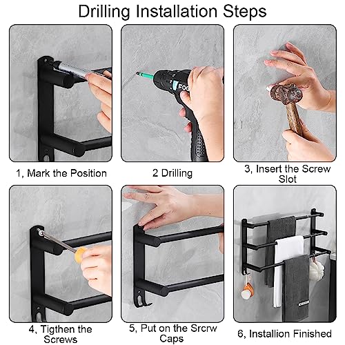 - 4, Easy Installation: Drilling Wall Mounted. Easy To Assemble, Simple But Practical. Screws Included. If You Have Any Problem with the Installation or Towel Bars, Please Do Not Hesitate To Contact Us Via Amazon Email, We Will Give You A Satisfactory Solution.