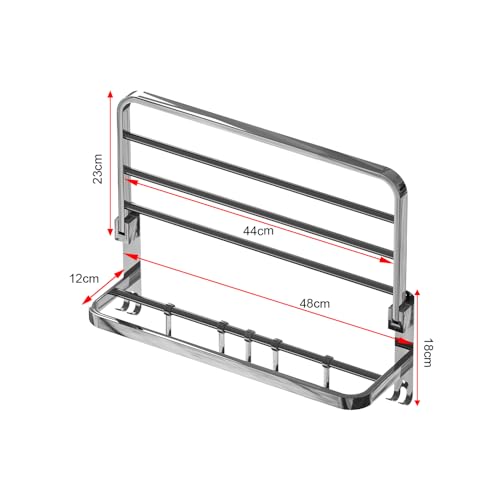 HONPHIER - Towel Holder Bathroom Towel Rail Wall Mounted Foldable Towel Holder Stainless Steel Bath Towel Holder with Hooks Multifunctional Towel Holder for Bathroom Kitchen Bathroom Toilet (Silver, 19